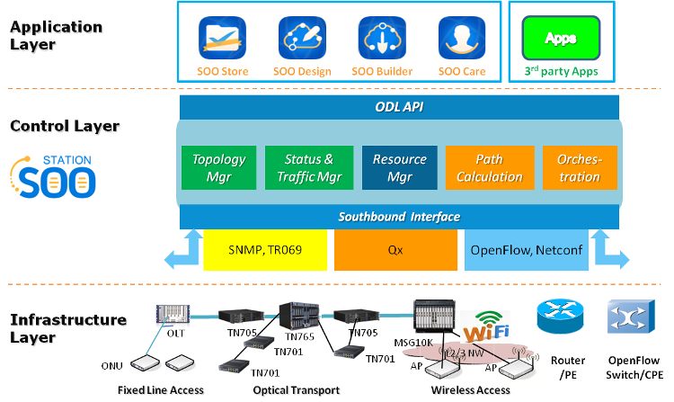 A unique combination of our packet optical transport and broadband access products with our innovative SDN platform SOO Network to offer an unprecedented automation and flexibility with improved bandwidth efficiency and strong carrier-grade features.