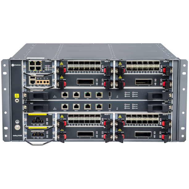 The TN705E is compact and high-performance device based on MPLS-TP/CE technology. The product offers total capacity of 800Gbps and can support up to 6x100GE interfaces in a small form-factor chassis of 5U. It features full duplex switching fabric and redundancy for all critical modules. The TN705E is optimized for aggregation or metro core applications.